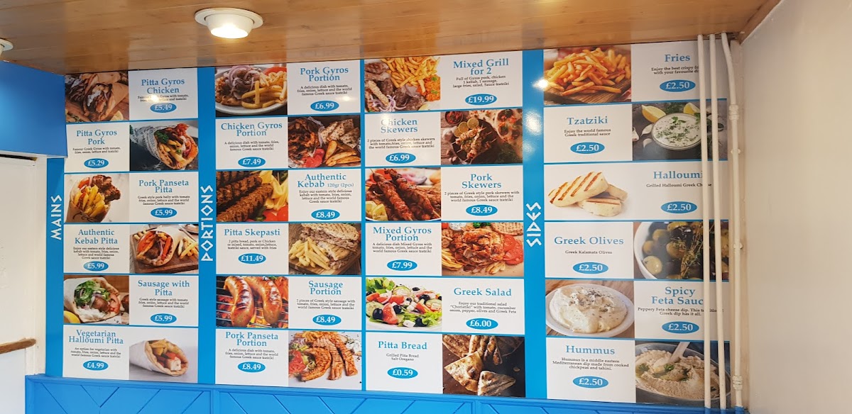 The menu at Zante Greek Street offers a vibrant selection of Greek-inspired dishes, making it a go-to spot for lovers of Mediterranean flavors. For a hearty meal, their Pitta Gyros Pork and Mixed Gyros Pitta are popular choices, alongside the Authentic Kebab Pitta Sausage. Vegetarians can enjoy the Vegetarian Halloumi Pitta, a delicious alternative. If you're in the mood for something more filling, the Mix Grill For 1 and Halloumi Skepasti are perfect options, as are the Mix Skepasti and Pork Skepasti. The Healthy Chicken and Rice Box offers a lighter choice without sacrificing flavor. For burger lovers, Zante serves the Chicken Gyros Burger Portion, Pork Gyros Burger Portion, and the veggie-friendly Vegetarian Halloumi Burger Portion, as well as the indulgent Zante Smash Burger Portion. Sides like Tzatziki, Greek Olives, and Spicy Feta Sauce are perfect complements to any meal, while extras such as Sausage Extra, Chicken Skewer Extra, and Lamb Souvlaki can elevate your dish. Sweet tooths will appreciate desserts like the Nutella Waffle, Handmade Victoria Sponge Cake, and Biscoff Cheesecake. For refreshing beverages, there's a selection of Coke, Sanpellegrino Aranciata, and Loux Lemon. Salads like the Greek Salad and Zante Salad provide a fresh, crisp option, while seafood lovers can enjoy the Sea Bass Fillet, Salmon Fillet, or Calamari. With such a wide array of flavors and options, Zante Greek Street delivers an exceptional dining experience.